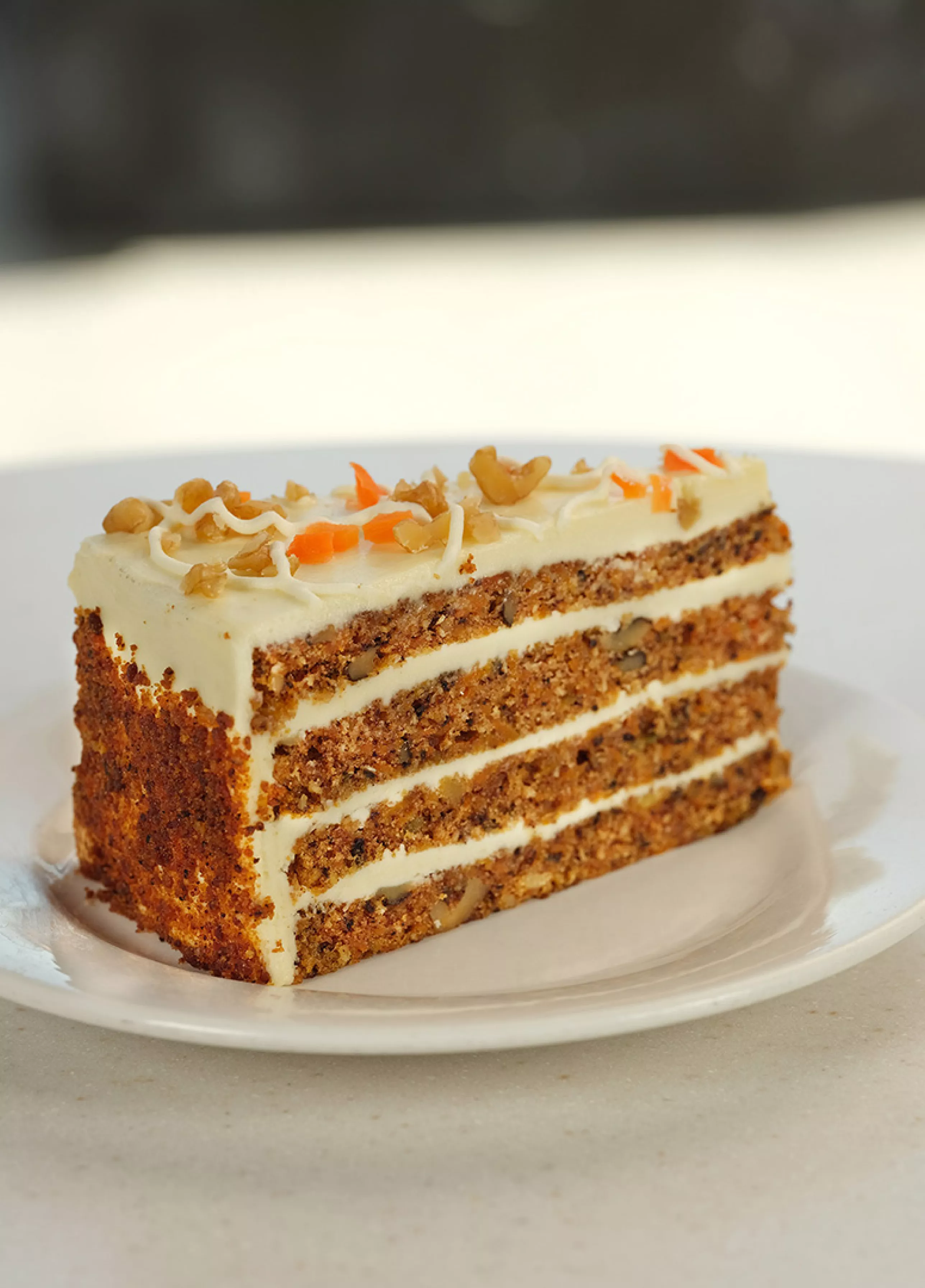 A favorite classic, layers of moist and flavorful carrot cake with cream cheese frosting.