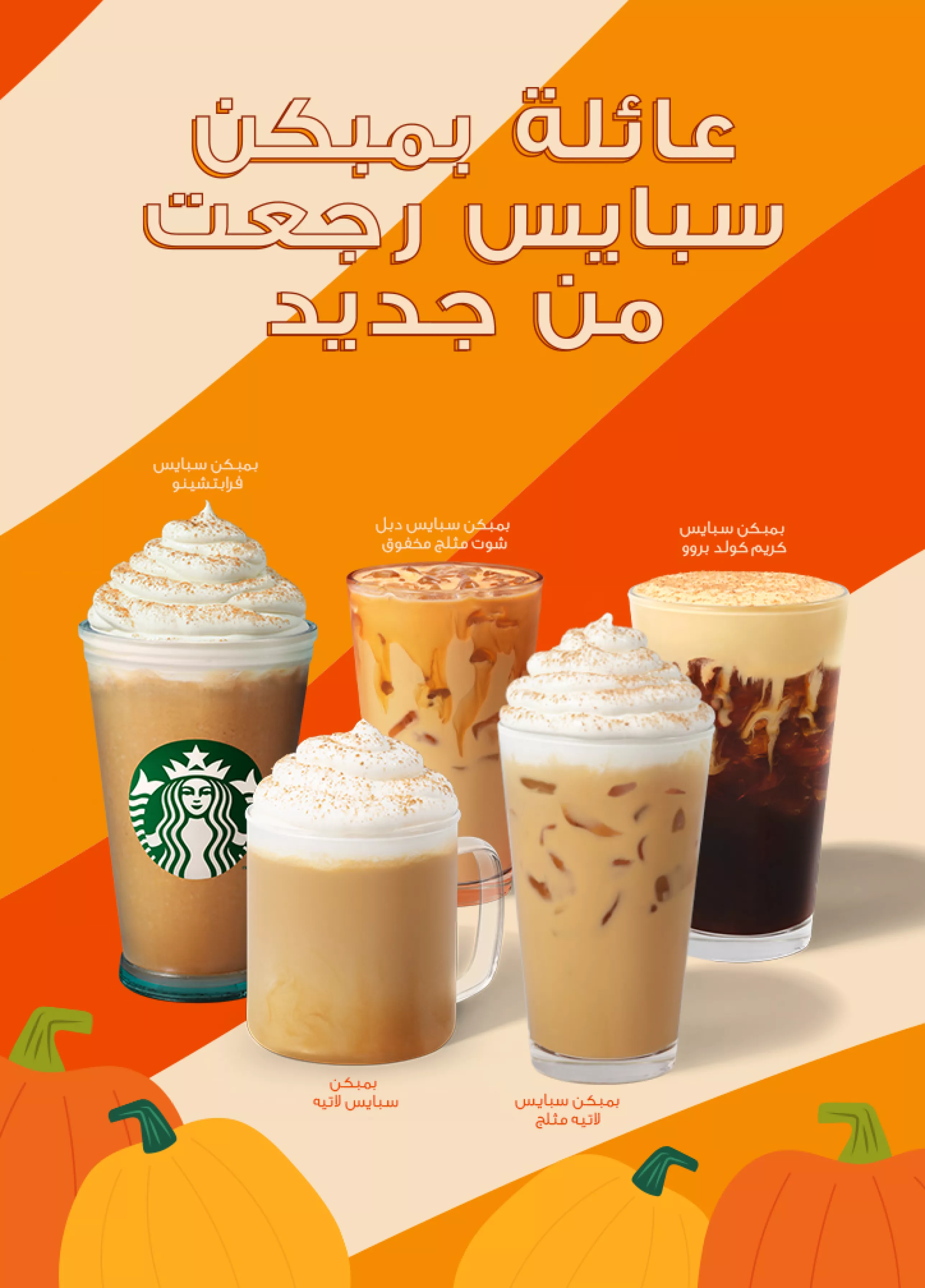 الخريف هو فصل النشاطات الخارجية والأماكن المفتوحة، والتي لا تحلو إلا برفقة العائلة والأصدقاء مع منتجات ستاربكس الخريفية.