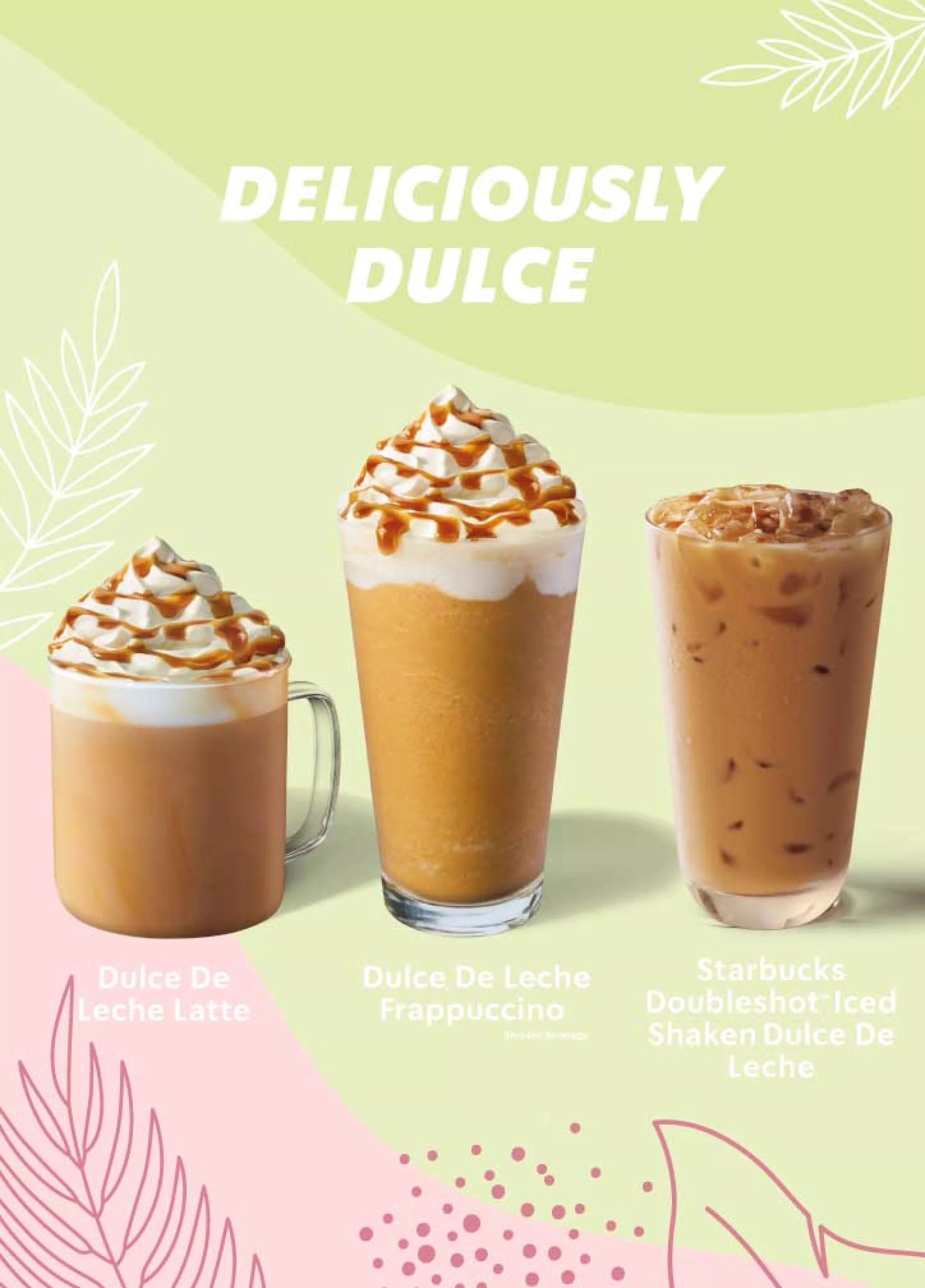 Yes, it is tricky getting the pronunciation right for this drink. Is it Doolse De Leche, Dolche De Leche or all the other creative variations you have heard? At Starbucks, it is also lovingly called #DDL A delicious treat of freshly steamed milk combined with our signature espresso and a smooth Dulce De Leche sauce, topped with whipped cream and caramel drizzle. It is a perfect switch up to your usual coffee runs – treat yourself to either hot or iced versions of this beverage. For a more indulgent experience, you can also opt for a Dulce De Leche Frappuccino®. Our Doubleshot lovers can also treat themselves to the Dulce De Leche Doubleshot™ (two favorites in one)